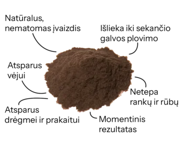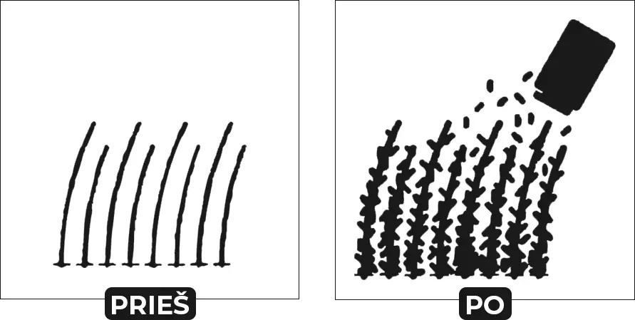 Mikropluoštai akimirksniu apgaubia plaukus ir vizualiai padidina jų storį, todėl plaukai atrodo pilnesni vos per kelias sekundes.