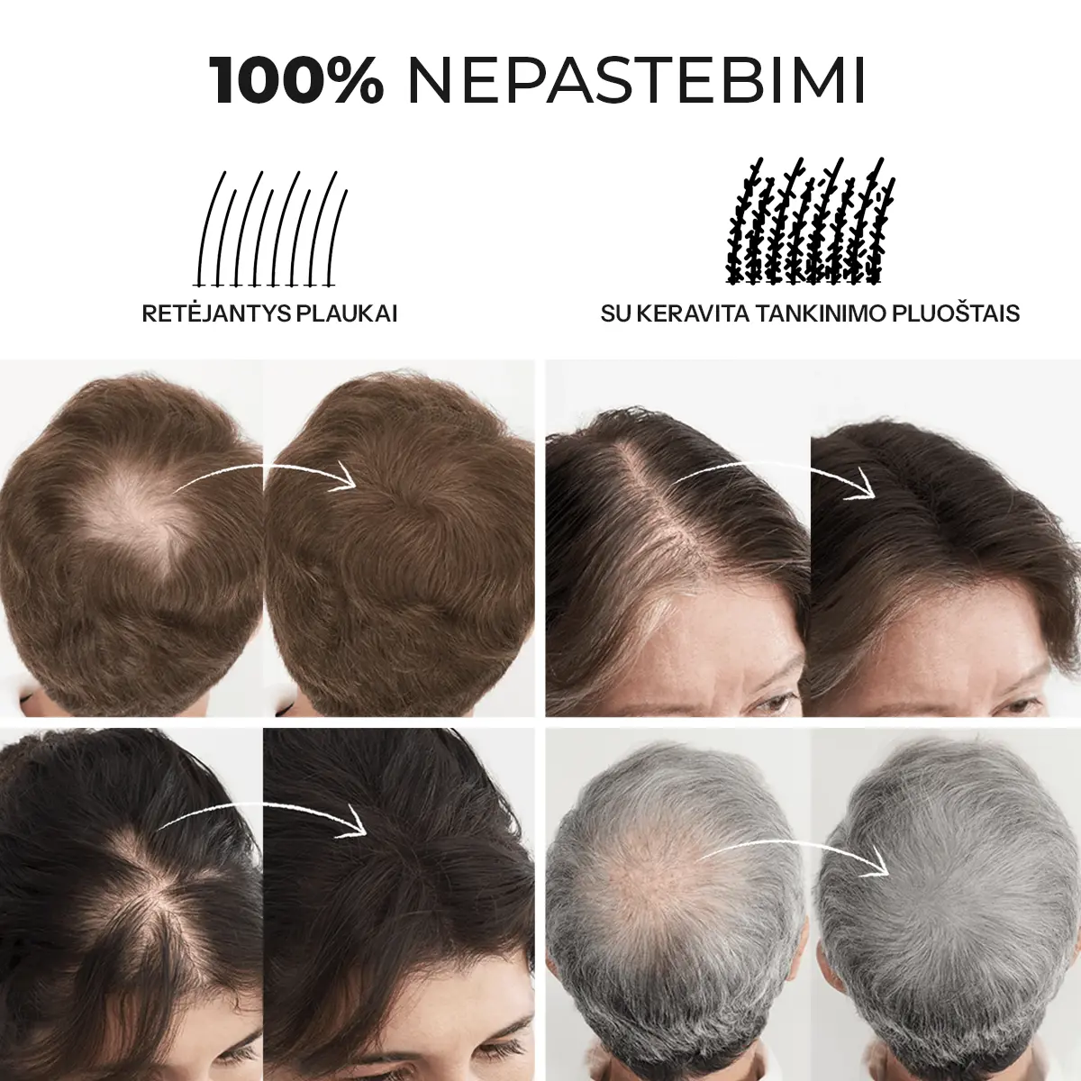 Tinka tiek vyrams, tiek moterims, susiduriantiems su plaukų retėjimu ar plonėjimu.