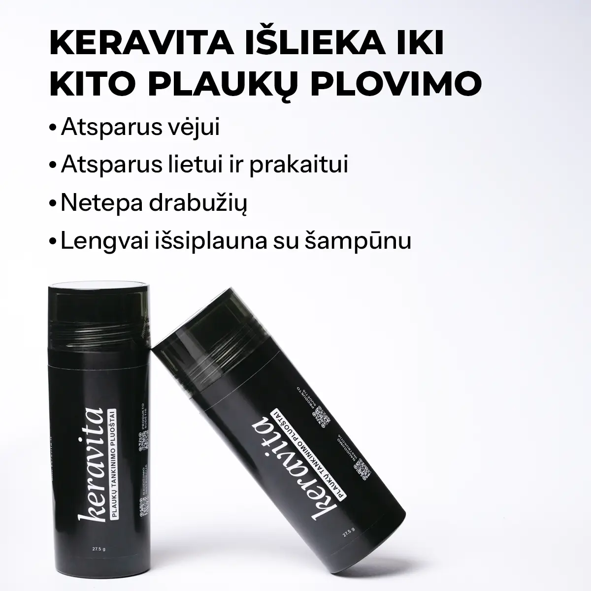 Keravita plaukų tankinimo pluoštai - tai mikroskopinės, lengvos skaidulos, kurios akimirksniu suteikia plaukams tankesnę ir pilnesnę išvaizdą. Tai greitas kosmetinis sprendimas vyrams ir moterims, norintiems vizualiai užmaskuoti praretėjusias vietas, platesnį sklastymą ar plonėjančius plaukus.