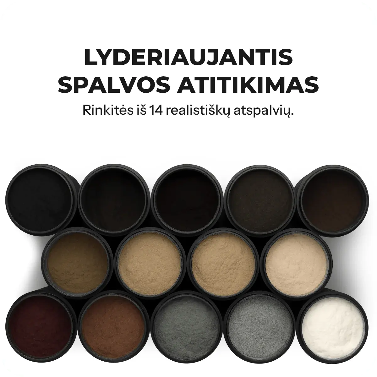 Rekomendacija: jei abejojate tarp dviejų atspalvių, rinkitės šiek tiek tamsesnį – jis paprastai atrodo natūraliau ir geriau maskuoja praretėjusias vietas.